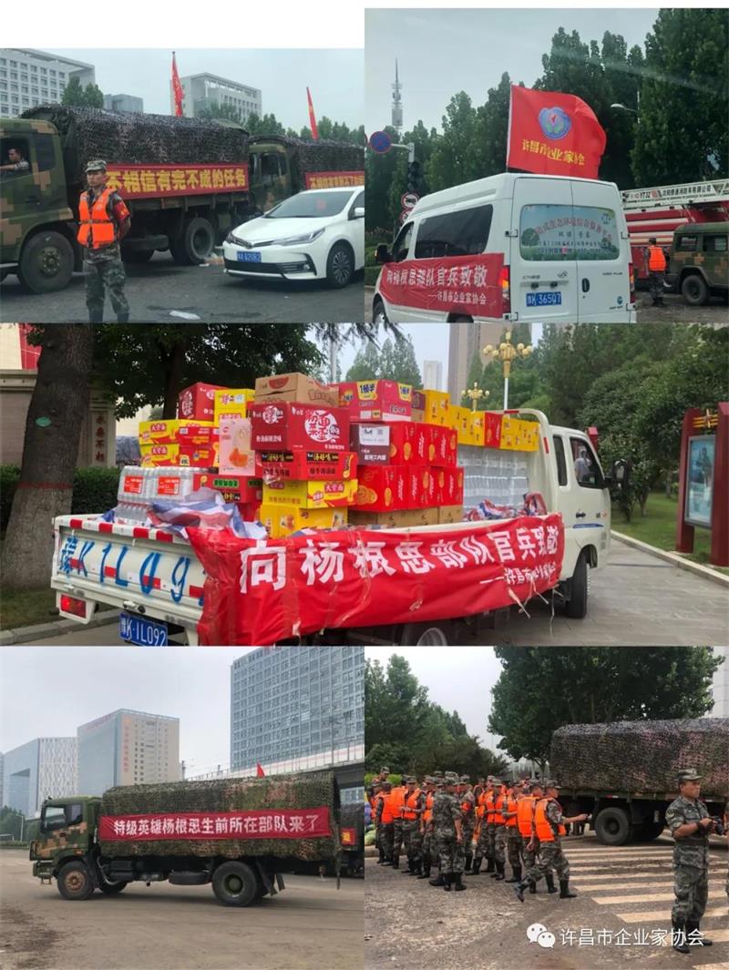 從鄢陵安置點回來后,企協(xié)秘書長黃玉霞久久不能平靜,每天密切關注著關于抗洪搶險的相關新聞。7月23日早上,黃秘書長在協(xié)會群里發(fā)了一條楊根思部隊官兵在鄭州抗洪搶險的視頻后,協(xié)會會員紛紛留言,要上抗洪前線和部隊官兵并肩作戰(zhàn),為抗洪搶險出把力。短短四個小時,協(xié)會30位企業(yè)家自發(fā)組織起來,購置了礦泉水、消毒水、面包、火腿腸、花露水等近6萬元的物資,下午一點驅車前往鄭州慰問逆流而上的楊根思部隊。
