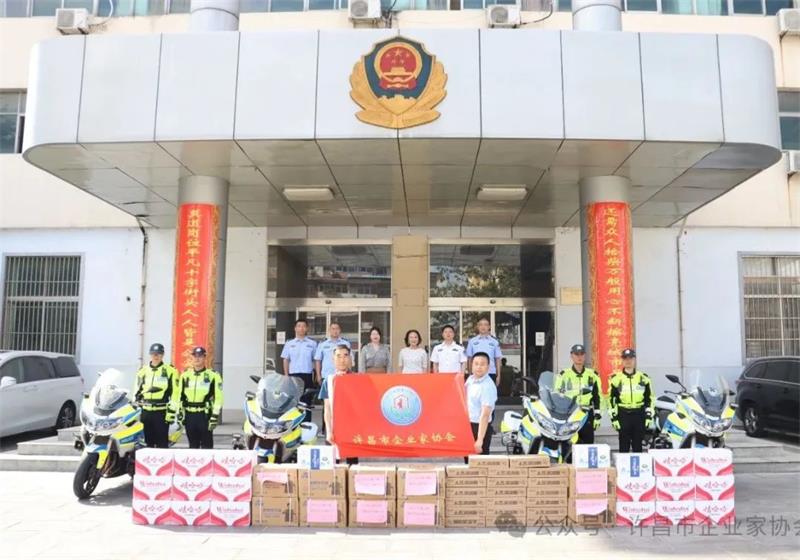 黃玉霞秘書(shū)長(zhǎng)一行為支隊(duì)民輔警贈(zèng)送了礦泉水、洗衣液等慰問(wèn)品。她表示在夏季連續(xù)的高溫酷暑天氣下,支隊(duì)交通管理工作者堅(jiān)守一線、查處違法、服務(wù)群眾、保障交通安全,特對(duì)持續(xù)堅(jiān)守崗位的民輔警表達(dá)誠(chéng)摯的慰問(wèn)和崇高的敬意。呂振杰支隊(duì)長(zhǎng)代表支隊(duì)全體同志向企業(yè)家協(xié)會(huì)一行表示感謝。