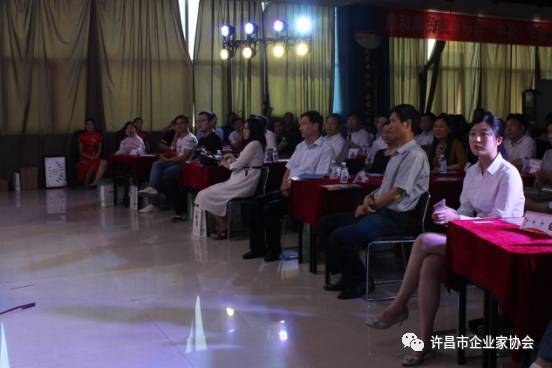 精彩的的開場舞之后,許昌市企業(yè)家協(xié)會副秘書長岳永安、許昌市工商聯(lián)副主席趙建民分別進行致辭,由魏都區(qū)工信局副局長陳慧卿、民建許昌主委郭瑞、紀(jì)年科技股份有限公司監(jiān)事會主席王金山分別頒發(fā)由香熙茶葉提供的三等獎獎品古丈毛尖,隨后由黨支部書記何志東和本月值班會長郎海霞及對新入會的七家企業(yè)進行授牌儀式。